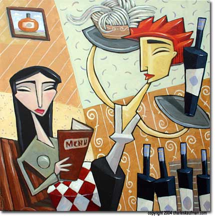 Well, my view on wine, music, and arts – I may not understand them, but life would be boring without them. There are 2 artists that I like while surfing the web – they have a collection of paintings on “wine”. Here are some of the sample works.
