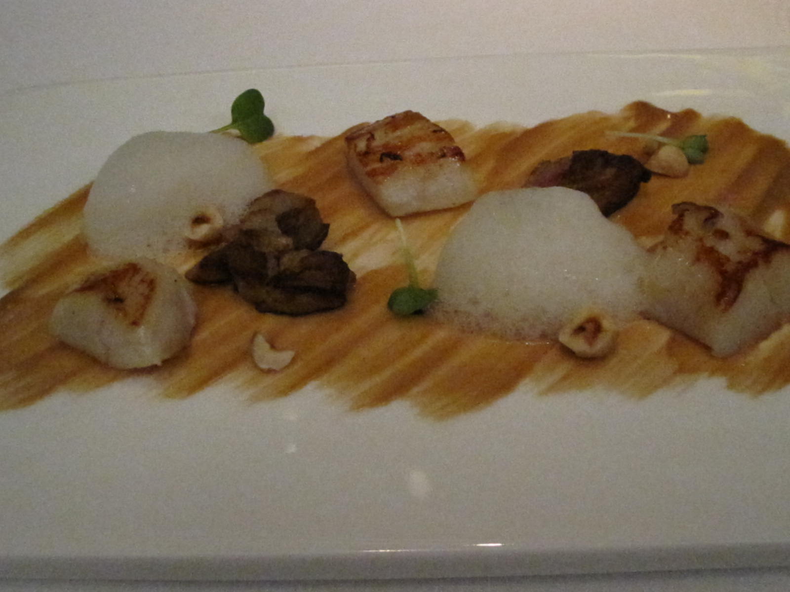 The Soave was to pair with “Painted Hazelnuts with Scallops and Froie Gras”; the spicy finish neutralized the fatty texture of the Froie Gras, and matched well with the sweetness of the hazelnuts sauce.