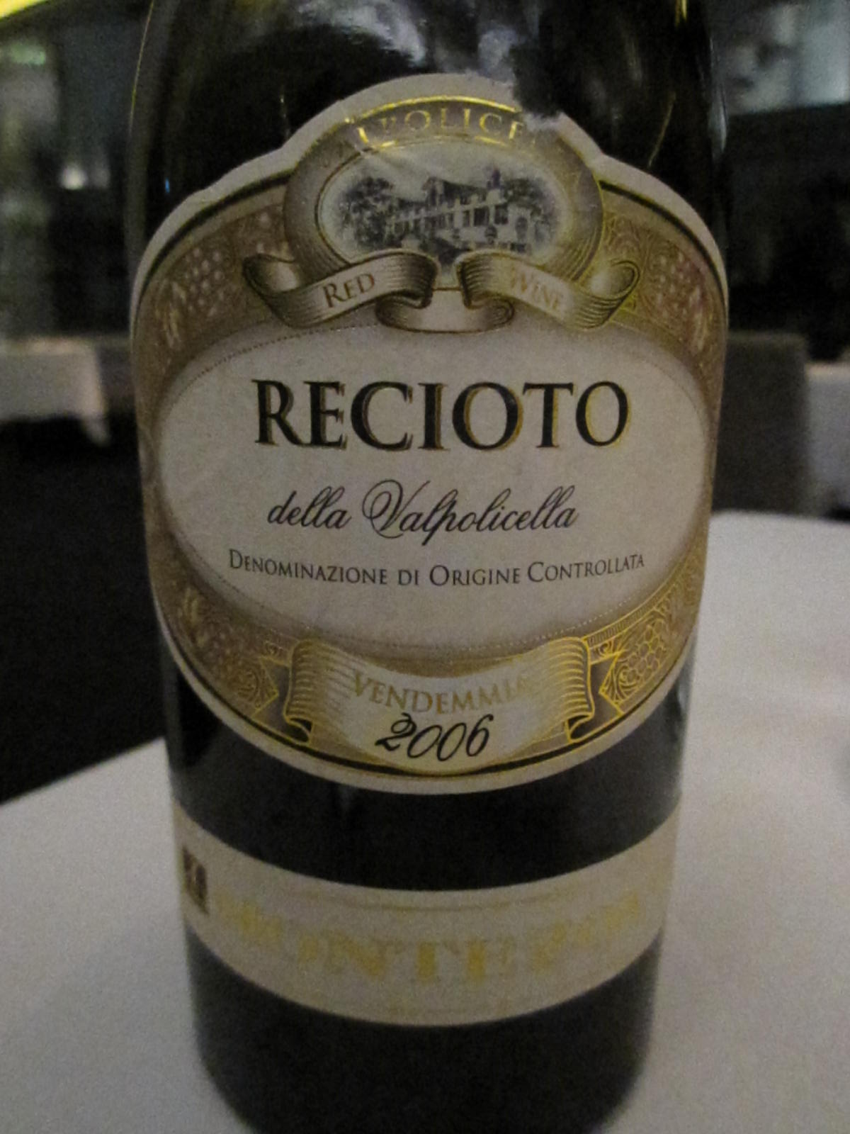 The final touch was the Amarone from Veneto matching with the “Domani Banana Split”. The dessert wine was a classic Amarone with raisins, dark rum on the nose and palate. It reminded me of Port. It matched very well with the banana split.