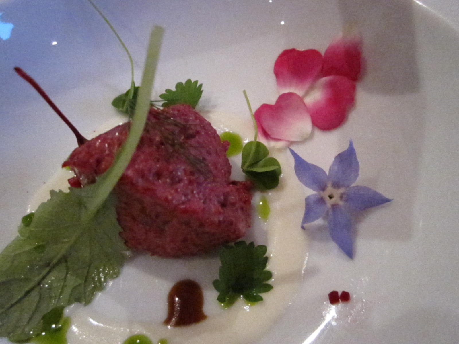 We were served with sparkling wine to enjoy with the canapés, and then dinner began …..