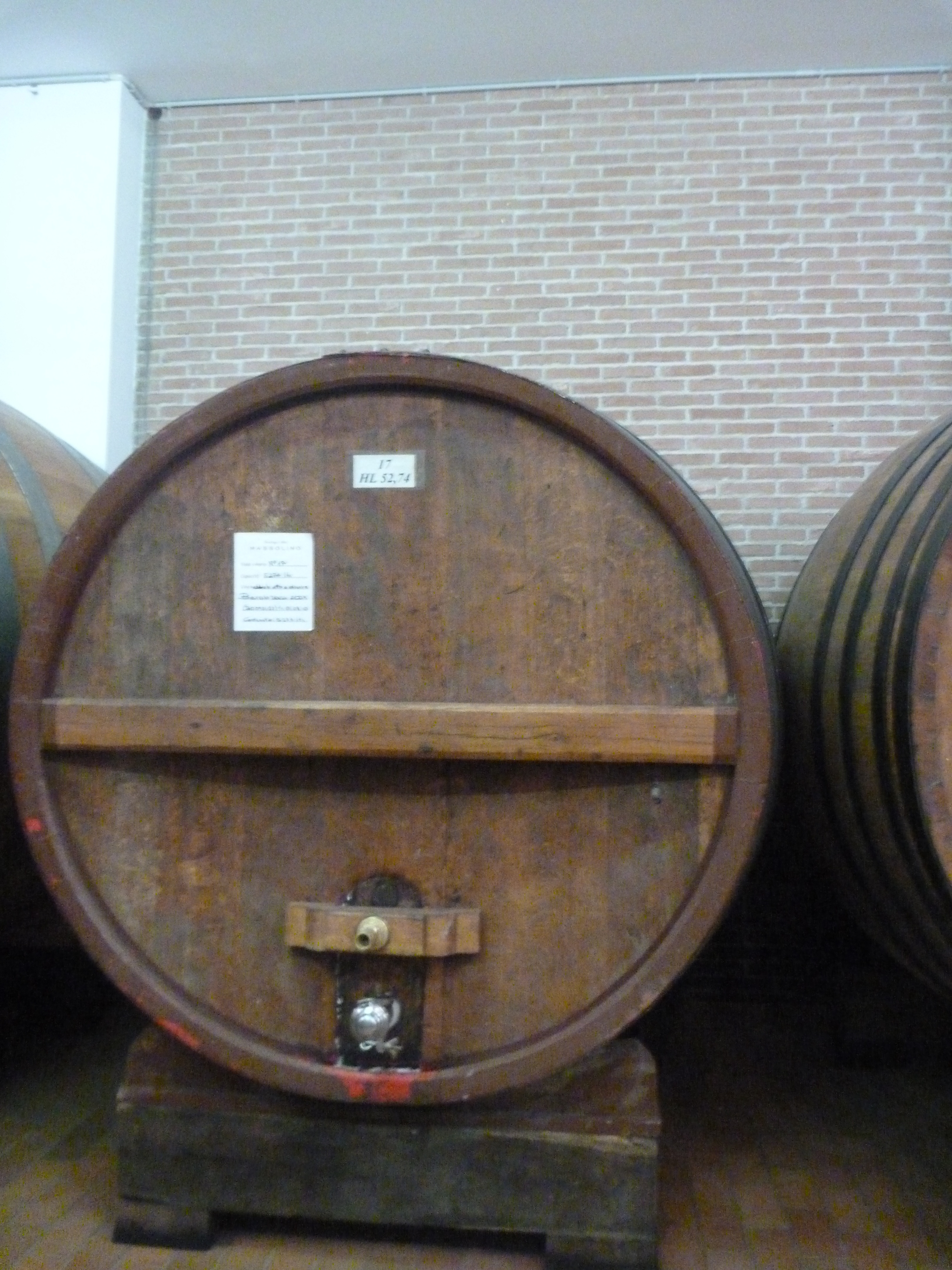 Franco then led us to the cellar; there were big wood barrels and small French oak barrels. The French oak barrels are used for aging Chardonnay, Dolcetto and Barbera. I asked, “What about Barolos?”