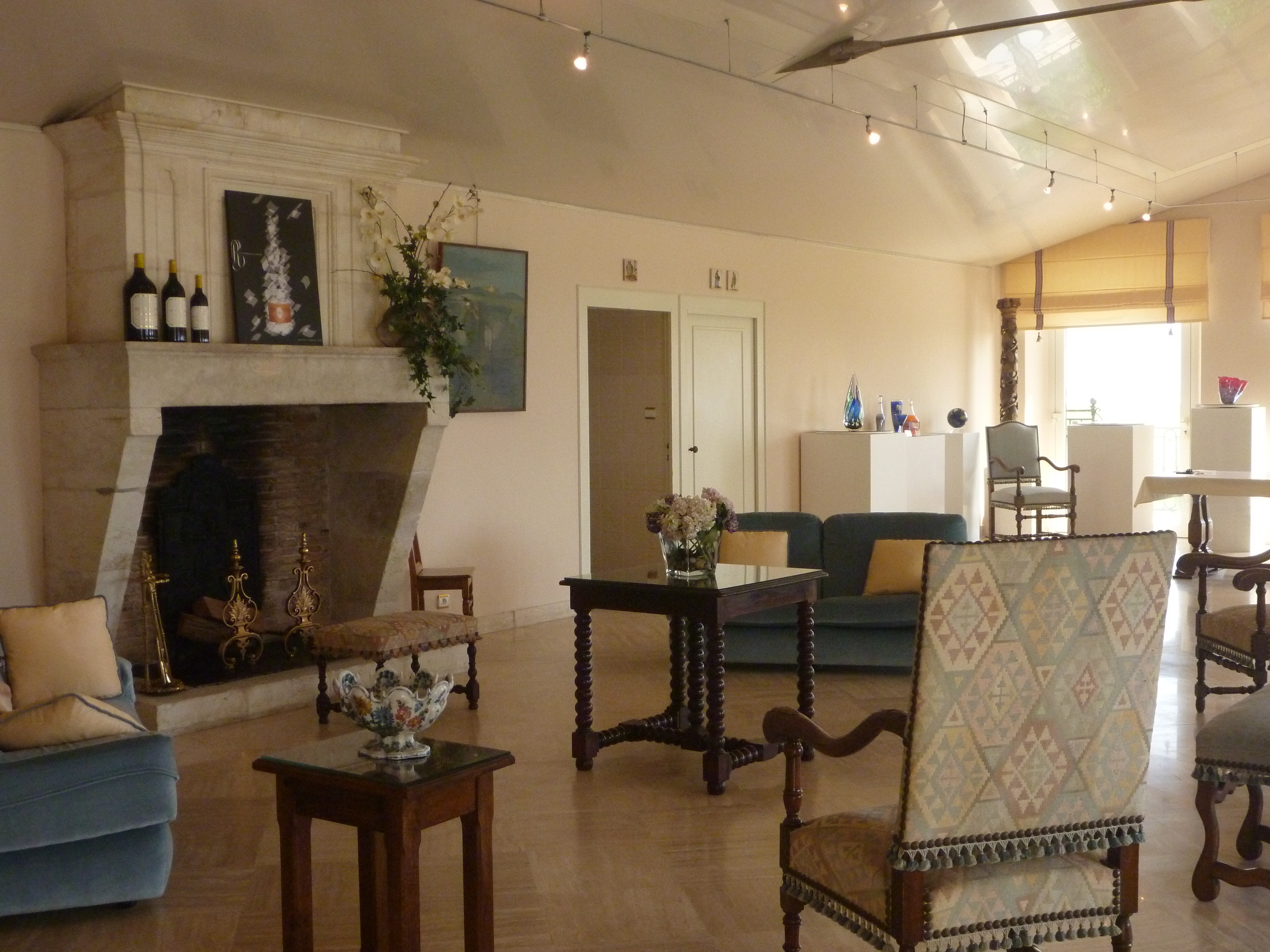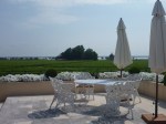 After the tour of the facility, we were led to the Tasting Room, and it was definitely a room with a woman’s touch. There was a terrace with white furniture, overlooking the vineyard. The Chateau was on the right and you could sit on the terrace with the clear blue sky and vines stretching miles and miles to the horizon.